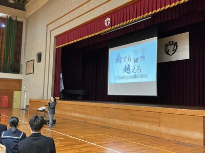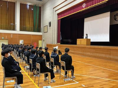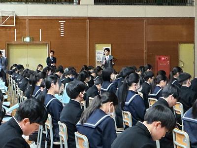 その後、生徒指導、安全指導、図書館教育、情報教育、部活動、教務などのそれぞれの担当の先生方から、大事なお話がたくさんありました。充実した学校生活を送るために、生徒の皆さんに大切にしてほしいことばかりでした。さあ、いよいよ新年度の本格的なスタートです!