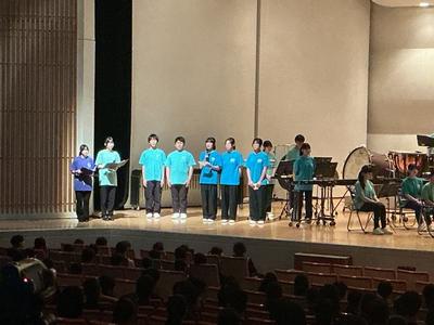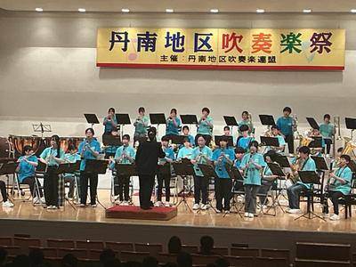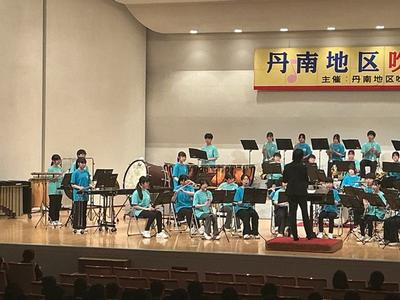 4月26日(日)に鯖江市文化センターで行われた「丹南地区吹奏楽祭」に、本校の吹奏楽部が出場しました。今回は万葉中学校の皆さんとの合同演奏で、「オレンジ」「RPG」の2曲を披露しました。会場の観客の方々も手拍子で盛り上げてくださり、とても楽しいステージとなりました。