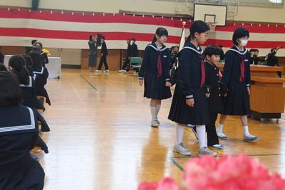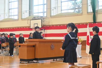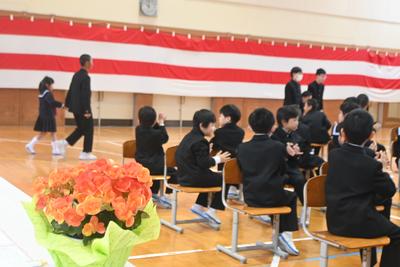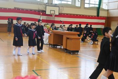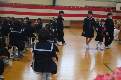 入学式では、6年生が新入生の手を引きながら一緒に入場しました。また、児童代表挨拶をしたり、後片付けを手伝ったり、高学年としての自覚をもちながら活動していました。 |