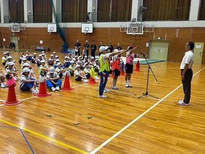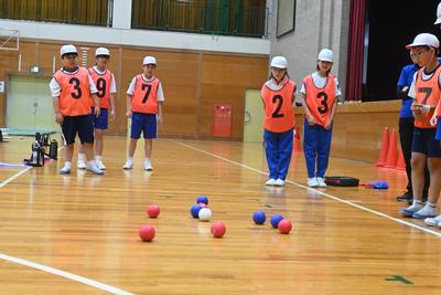 今立地区4小学校の6年生が進学予定先である南越中学校体育館に集まり、写真のようなニュースポーツで交流を深めました。最初は緊張していましたが、一緒にゲームに取り組むうちに元気な声を出して体を動かすことができました。 |