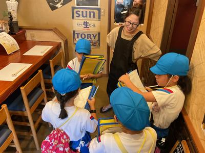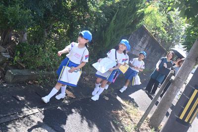 生活科でまち探検に出かけました。校区内ですが、初めて行く場所や初めて入る場所があり、新しい発見をたくさんできました。自分たちで地図を見たり、時計の時間を気にしたりしながら、無事学校に帰ってくることができました。お世話になった施設の皆さん、ボランティアでご協力いただいた保護者の皆さん、ありがとうございました。 |
