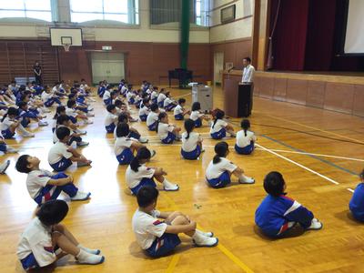 第153回創立記念式典を行いました。約130年前の学校の様子や約100年前(約600人の児童がいました)の運動会の様子、紙漉き作品の写真を振り返りながら、伝統ある岡本小学校の歴史を振り返るとともに未来に思いを馳せました。PTA会長からは、自分も卒業生であり、紙漉き体験を今でも覚えているということや、岡本小学校を卒業できてとてもよかったと思っているので児童のみなんさんも元気に頑張ってほしいことなどの話がありました。 |