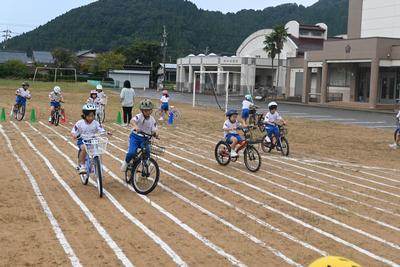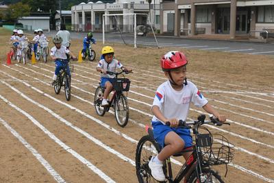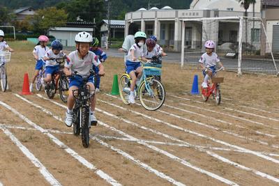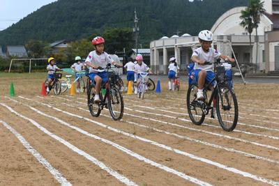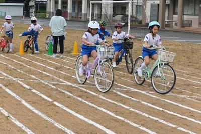 3年生は2時間目に自転車の実地練習会を行いました。最初に警察の方から、ヘルメットをかぶって乗ることや、交差点では飛び出しをせず、しっかり止まって左右確認をすることなどのお話を聞きました。その後、校庭で自転車に載る練習をしました。 |