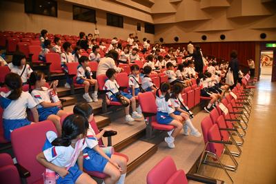 1・2年生が、いまだて芸術館で行われた、「ふるさと子どもコンサート」を鑑賞しました。招待された、今立・池田地区の小学校やこども園のお友達と一緒に音楽を楽しみました。写真は、開演前の様子です。 |