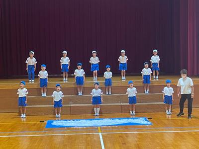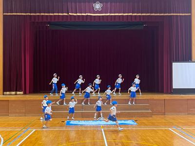 1年生は学習発表で、国語の教材「くじらぐも」の発表をします。群読や歌、ダンスなどで話の世界を表現します。 |