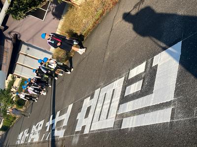 新在家町の児童通学路に新しく「通学路注意」の標示ができました。児童の皆さん、ドライバーの皆さん、お互いが気を付けて通行してください。