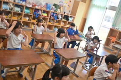 ALTのジュリー先生から、1年生は果物、2年生は数の英語での表現について習いました。体を動かしたり、ビンゴをしたりして、楽しみながら英語を身につけました。 |
