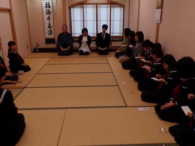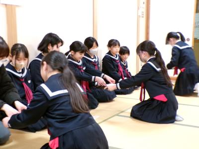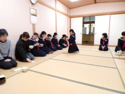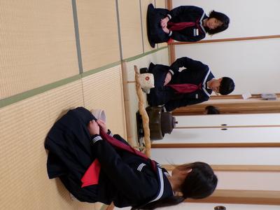地域の方にご指導いただいている茶道クラブの「初茶会」があり、学校の先生も招待されました。普段より少し緊張しながらも、練習の成果を発揮することができました。