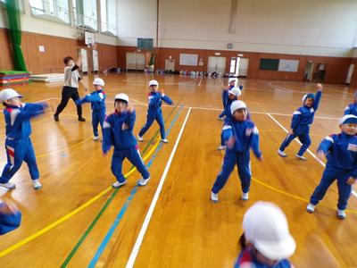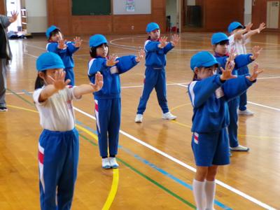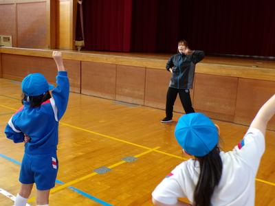 越前市低学年体育支援事業として谷口先生を講師にむかえ、2回目のダンスの授業がありました。今日は、曲の最後までダンスを教えてもらい、繰り返し練習をしました。最後まで上手にダンスができるようになり、終わった後には、自然と拍手がおきました。 |