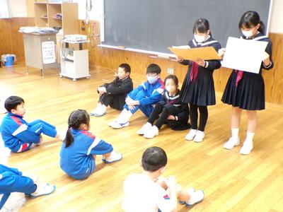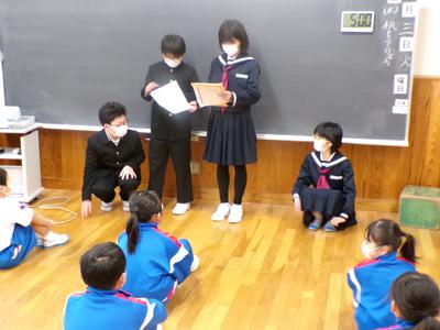 5年生が、3月に行う「6年生を送る会」にむけて、1~4年生に内容の説明を行いました。5年生は、いよいよ学校のリーダーとして活動していきます。考えた送る会の内容を丁寧に話すことができました。 |