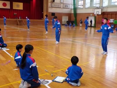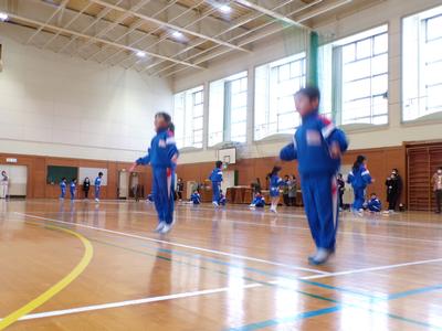 1年生と6年生が合同でなわとび大会を行いました。お互いに数えあったり、がんばれと声をかけたりしました。 |