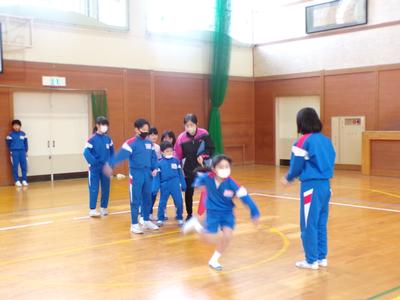 業間におおなわ大会を縦割り班で行いました。高学年のやさしい声かけがたくさん響く中、これまでの練習の成果を出そうと、一生懸命跳んでいました。最初はうまく跳べないことが多かったですが、みんな上手になりました。今日はこれまでの最高回数を出すことができたでしょうか。 |