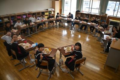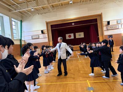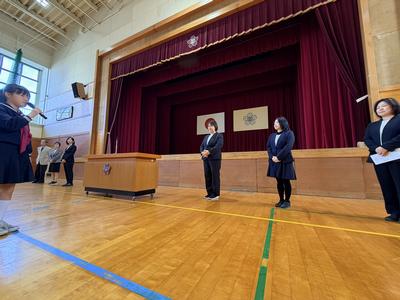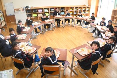 今年度最後の登校日でした。終業式・修了式・離任式を行い、今年度の成長を振り返ったり、春休みの生活について話を聞いたり、6名の先生とお別れをしたりしました。給食時には、輪になって食べながら、1年間の思い出を語り合っていました。 |