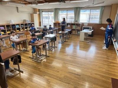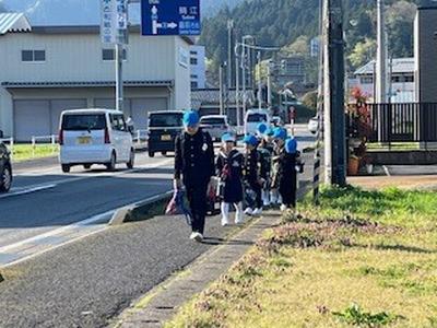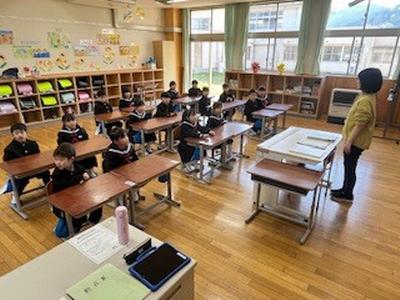 1年生にとって初めての集団登校と朝の会でした。朝の会後は、「町内子ども会」があり、地区ごとに分かれて登校班の決まりや町内の危ない場所などについて確認をしました。 |