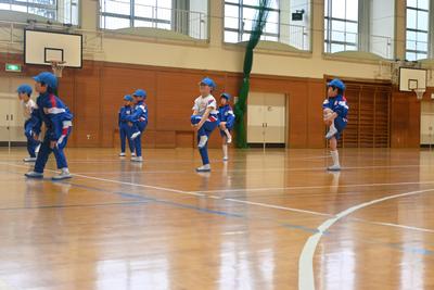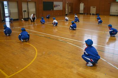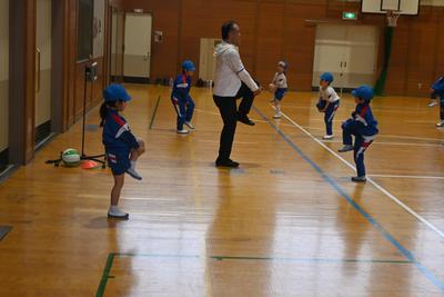 今年は担任の先生とは違う先生から体育を習います。しっかり見ながら、準備運動でしっかり体を動かしています。 |