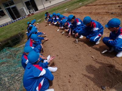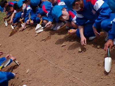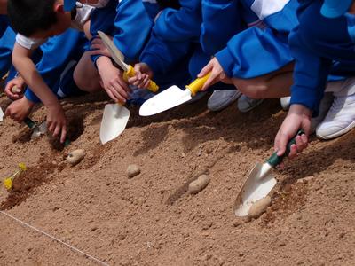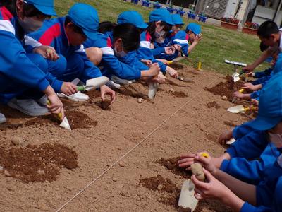 理科の授業で、秋にデンプンの検出に使うためのジャガイモを植えました。 |