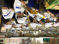 普段は見られない光景をじっくり観察し、店長さんの話を聞いて一生懸命にメモを取る様子が見られました。