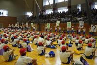 今年の体育大会のテーマは「熱き太陽、赤組の絆、白銀の月、白組の力、万博よりも盛り上がれ」でした。