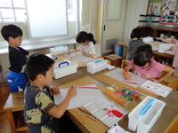 今日は、「にじ」の色塗りをしました。