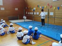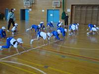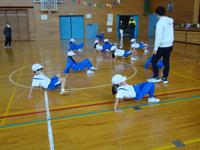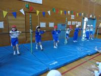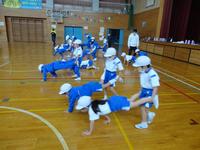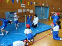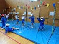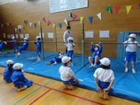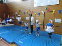 まずは、鉄棒に10秒ぶら下がれるように練習します。(腕を曲げて)