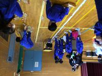 1組、2組ごとにクラスでリハーサルをし、学年で交流してリハーサルを行いました。