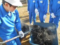 10月に横根地区で伐採してきた竹を焼いて炭にしました。火が怖くて竹の投入に怯えたり、炭酸のような水分が竹の端からじわっと出てくることを発見したり、消火の際に出る大量の湯気に驚いたりと、あっという間の2時間でした。竹炭は畑にまくと、とても良い肥料になるということ。大虫地区の方にお配りしようと考えています。