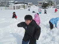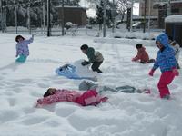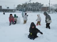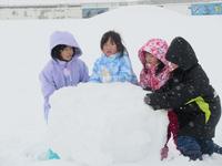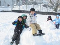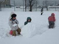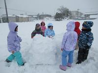 雪だるまを作ろうと思って、雪玉を転がしました。