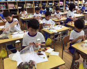 教室に持ち帰ると、材料を使って思い描いたものを作品として上手に完成させていました。