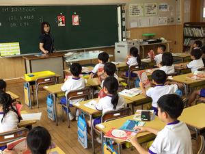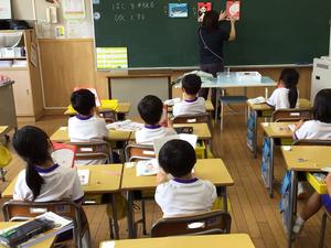 算数の授業。「おおきさくらべ」の勉強をしていました。