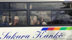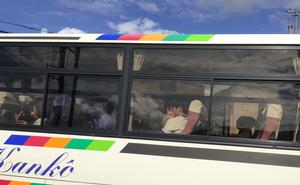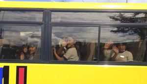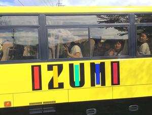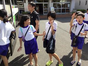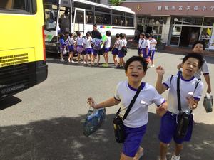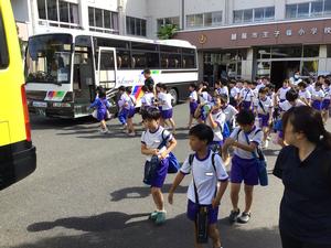 4年生は、午後からの水泳学習でした。会場まではバスで移動です。バス乗車前の様子を撮りました。