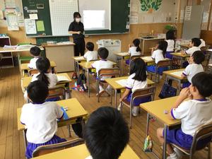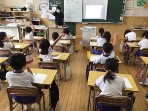 算数の授業をしていました。4cmの電車のおもちゃがあり、2つ分、3つ分の長さを求める問題でした。答えを求める時、かけ算を使う、足し算を使うなど意見が出ました。実際、かけ算で求めたり、足し算で求めました。では、5つ分や9つ分を聞かれたらどうしましょう。かけ算、足し算どちらを使って求めるのが便利かを学んでいました。