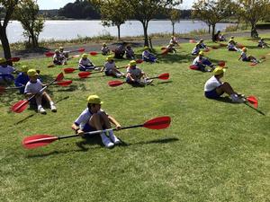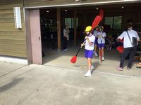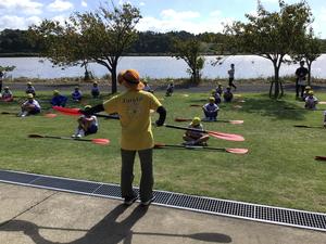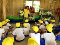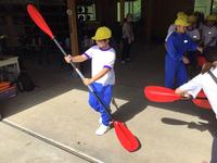 カヌーが、強風のため実施できなくなりました。明日にカヌーができるよう予定を組み替えてもらいました。安全が第一なので、まず、ライフジャケットの付け方を学びました。次に、パドルの操作の仕方を学びました。明日のカヌー実施を信じて取り組んでいました。