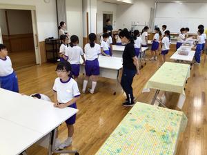 思い思いのデザインのキーホルダーができました。この後は、夕食とキャンプファイヤーが控えています。