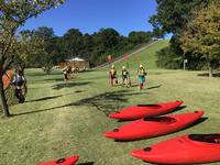実際に湖面に出る前に、カヌーの乗り方、降り方を学びました。