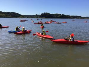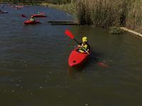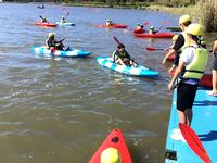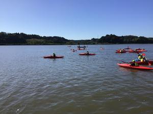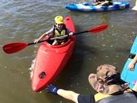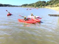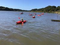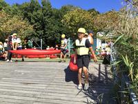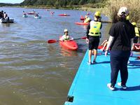 前日の強風で、中止になったカヌー体験ができるようになりました。白波が立っていた水面は、ずいぶんと穏やかでした。