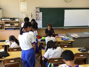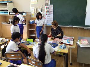 外国語の授業をしていました。ALTの先生や担任と外国語を使って会話をしていました。①行きたい国②その国の有名な観光地③有名な料理など、児童は上手に伝えていました。多くの児童は、アメリカ合衆国や韓国、イタリアを選び会話をしていました。シンガポールやカナダを取り上げた児童もいました。