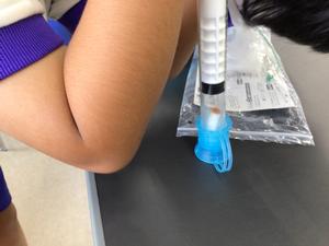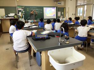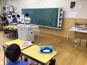 2組は理科。「閉じ込められた空気と水」の学習でした。押しちぢめられるのは、空気?水?再確認していました。