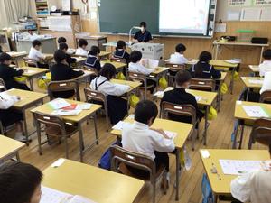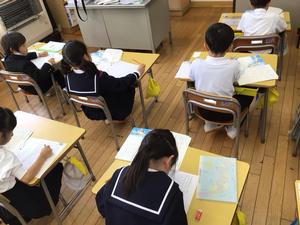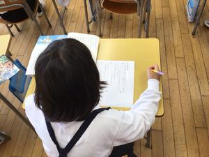 午後は国語の授業でした。漢字ドリルの中に試写するページがあり、それに取り組んでいました。その後、「くじらぐも」のプリントを仕上げていました。