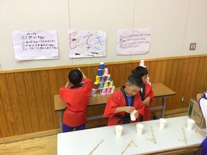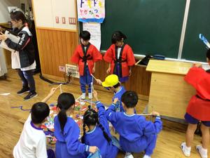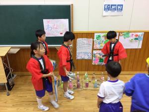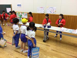 2年生がおもちゃランドを開きました。むつみホールに8つのお店が開店。それぞれの店員として、訪れたお客さんをもてなしていました。1年生が招待され、大変熱気に包まれた会場となりました。