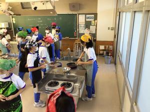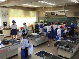 3校時と4校時は家庭科で調理実習でした。準備をしている様子です。