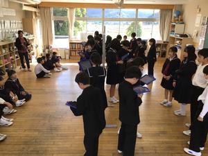 発表は、聞いている5年生が楽しんでもらおうと、○×クイズや3択クイズを取り入れて工夫している様子が見られました。このような語り継いでいく時間や場面を大切にしていきたいなと強く思う光景でした。