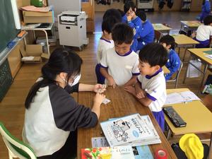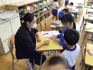 算数の授業で6の段のかけ算をしていました。教室からにぎやかな声が聞こえてきます。訪れると、6の段がスラスラ言えるか先生に聞いてもらっていました。