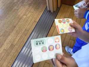 手には、九九名人認定証。スラスラ言えて合格するとシールを貼ってもらえるようです。
