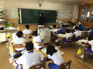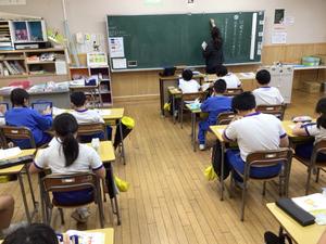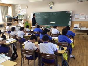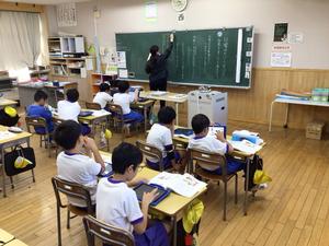 1組は道徳。「日曜日のバーベキュー」の単元でした。川原に捨ててきたゴミを思い浮かべながら、ぼくはどんなことを考えた?という問いに、自分の考えを書き込んでいました。