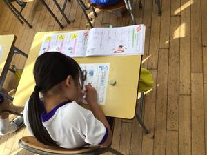 プリントが合格すると漢字ドリルの直しをしていました。すべてクリアしたら、静かに教室にある本を読んで過ごしていました。