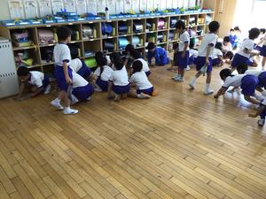 「自分たちの教室を使う◯◯組(5歳児クラス)のために、きれいにしよう」となり、みんなで雑巾がけをしてくれました。心が温まる光景でした。