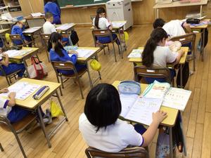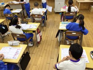 2組は算数でした。算数のワークを黙々と解いていました。