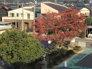児童玄関前の桜の木は、赤く色づいています。秋の深まりを感じます。