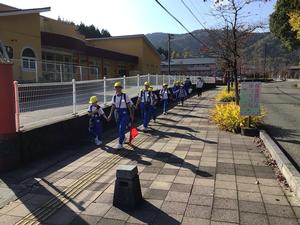 今日は、わくわく班遠足。約3kmの道のりを歩いて白崎公園まで行きます。開会式では、後期児童会長の挨拶の後、班ごとに出発しました。6年生が1年生の手を引いて歩く姿が微笑ましかったです。