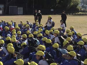 全員が校庭に集合し、閉会式を行いました。児童代表が素敵な感想を述べました。他にも、5年生が考えた遊びが楽しかった、来年のわくわく班遠足も楽しみだ、いつもは話をしない子と話ができてよかった、といった感想が聞かれました。
